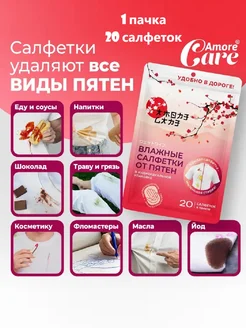 Влажные салфетки от пятен, пятновыводитель, 1 пачка 20 шт