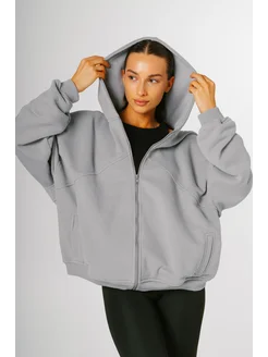 Зип худи оверсайз на молнии с капюшоном и микроначесом