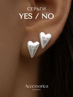 Серьги бижутерия сердце с надписью с гравировкой YES NO