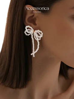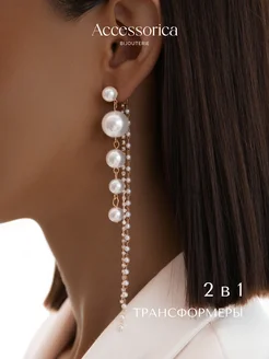 Серьги бижутерия длинные висячие серьги вечерние с жемчугом