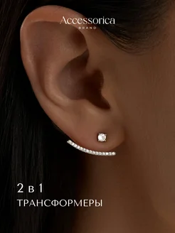 Серьги бижутерия гвоздики трансформеры с камнем вечерние