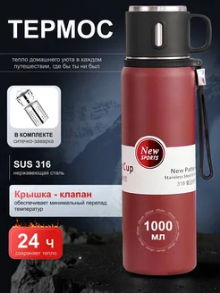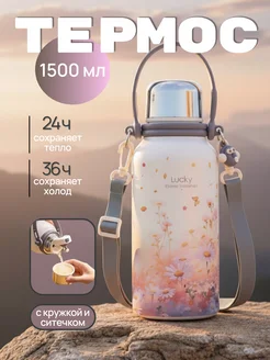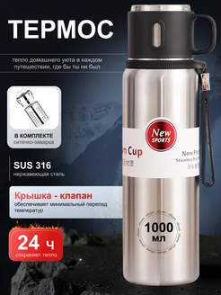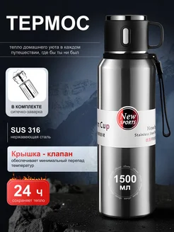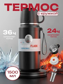 Термос 1,5 литра для чая и кофе металлический с кружкой
