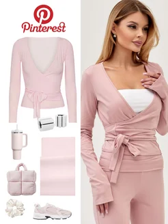 Блузка топ лонгслив на запах с завязками