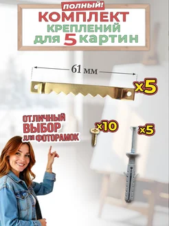 Зубчатый подвес для картин. Полный комплект 5 шт с крепежом
