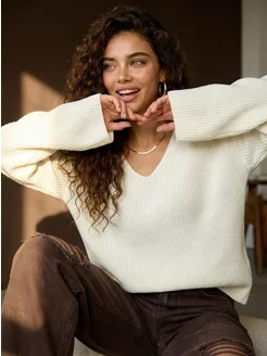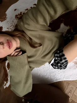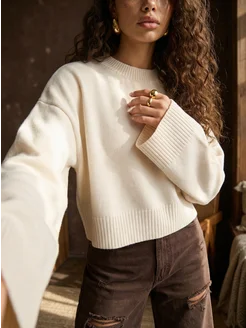 Свитер вязаный облегающий с открытыми плечами и рукавом клёш