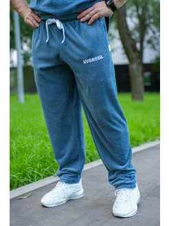 Брюки спортивные из велюра с вышивкой "SVOBODA"