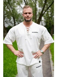 Футболка хоккейка-шнуровка из велюра с вышивкой "SVOBODA"