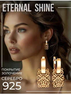 Длинные позолоченные серьги протяжки Серебро 925 Звезды