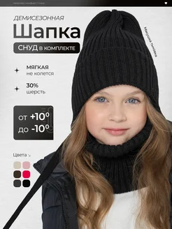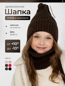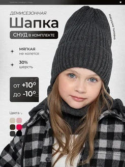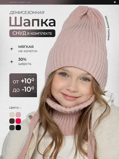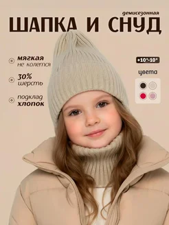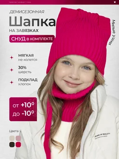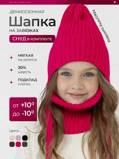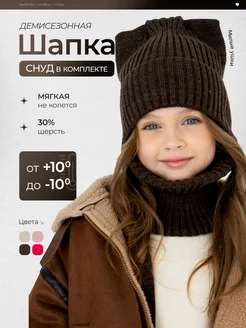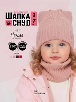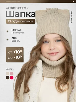 Комплект шапка и снуд детская осенняя на завязках с ушками