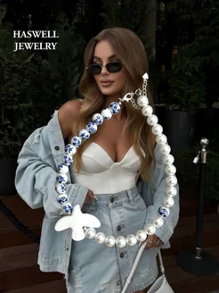 Колье чокер с птичкой голубка мира бижутерия на шею