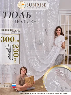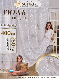 Тюль под лен 200х250 в спальню и гостиную готовая