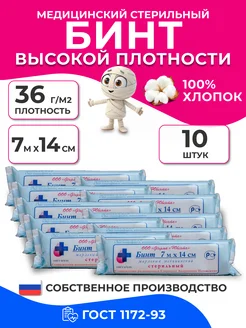 Бинт медицинский нестерильный 7м 14см 10 шт