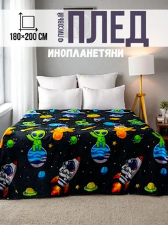 Плед флисовый с рисунками инопланетяне и космоса 180×200