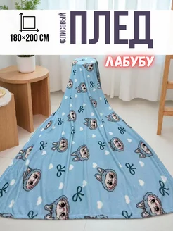 Плед с рисунками лабубу 150×200 голубой