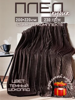 Плед кубик плюшевый шоколадного цвета евро размер 200×220