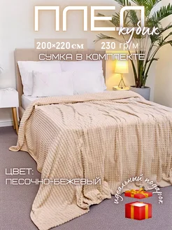 Плед кубик песочно-бежевый евро 200×220