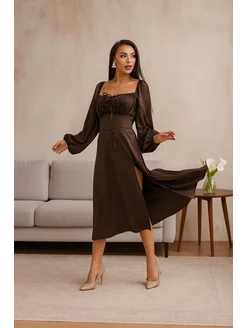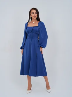 Платье крестьянка шелковое вечернее праздничное на завязках
