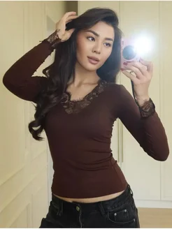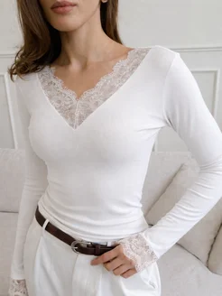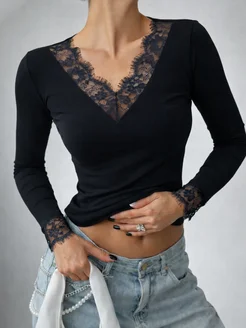 Лонгслив приталенный с кружевом женский