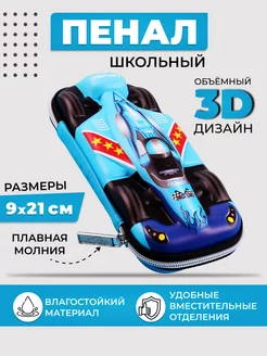 Пенал школьный на широкой молнии 3D машинка