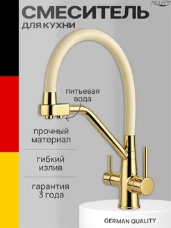 Смеситель для кухни с фильтром золотой