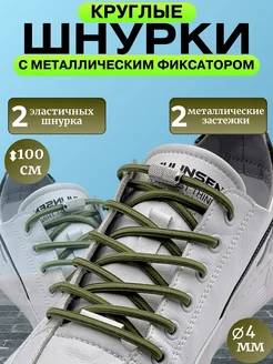 Шнурки резинки с фиксатором хаки круглые 2 шт