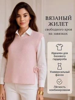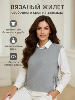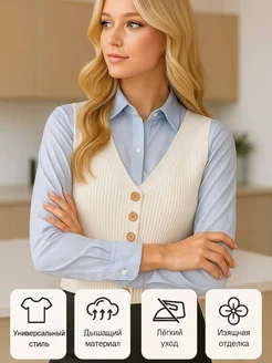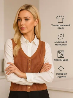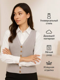 Жилет вязаный классический на пуговицах, кроп жилетка