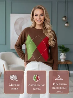 Свитер оверсайз с принтом ромбы