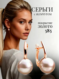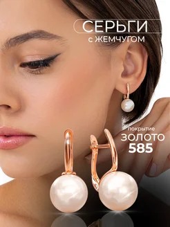 Серьги бижутерия с жемчугом белым позолоченные