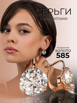Серьги бижутерия с фианитами крупные позолоченные