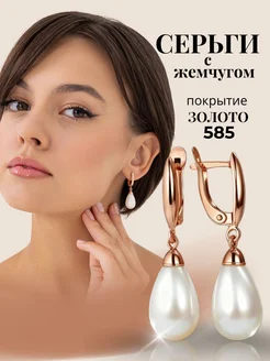 Серьги бижутерия с белым жемчугом позолоченные