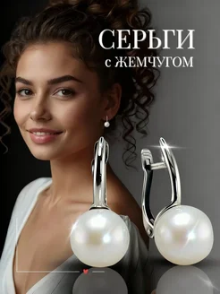 Серьги бижутерия с белым жемчугом