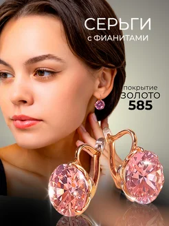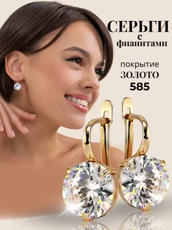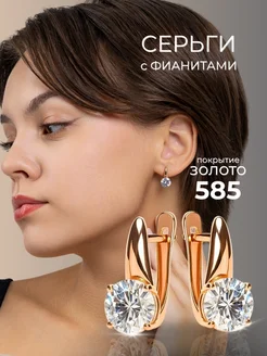 Серьги бижутерия с фианитами позолоченные