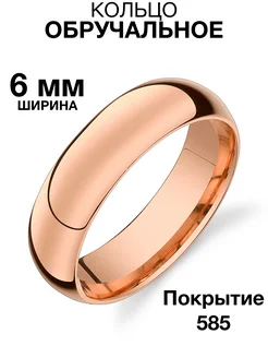 Кольцо обручальное ширина 6 миллиметров позолоченное 585