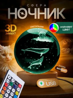 Светильник декоративный "Хрустальный шар" с подсветкой Киты