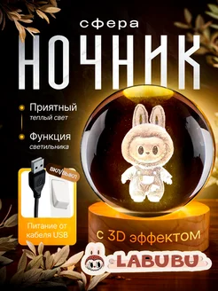 Светильник сфера ночник Лабубу "Хрустальный шар" с кнопкой