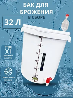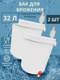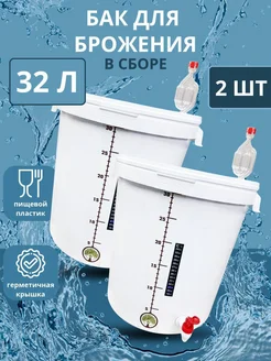 Бак для брожения 32 литра с гидрозатвором и краном, 2 штуки
