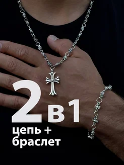 Комплект хром хартс подвеска с крестом + браслет