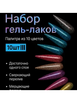 Геллак глиттер для ногтей набор 10шт
