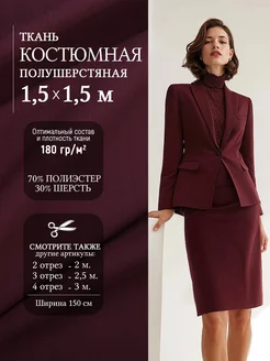 Ткань полушерстяная костюмно-плательная бордовая 1,5 м