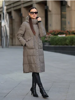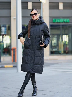 пуховик женский зимний длинный с капюшоном на молнии
