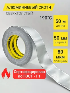 Алюминиевый скотч 80мкм 50м фольгированный термостойкий