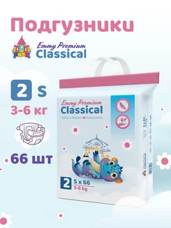 Подгузники для новорожденных 2 размер S 3-6 кг 66 шт Emmy