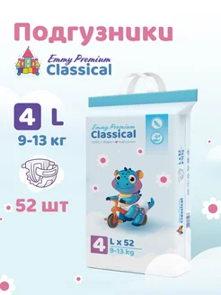 Детские подгузники на липучках 4 размер L 9-13 кг 52 шт Emmy