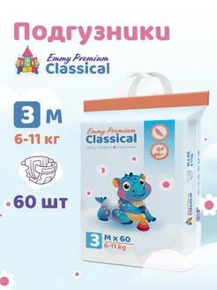 Детские подгузники на липучках 3 размер 6-11 кг 60 шт Emmy
