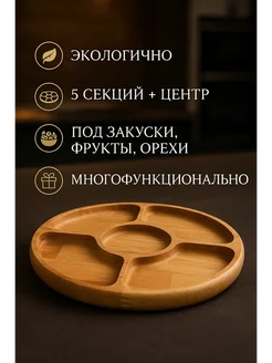 Круглый деревянный поднос-менажница 5 секций для закусок