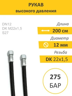 Рукав высокого давления РВД на МТЗ 12х2000мм DK22x1,5