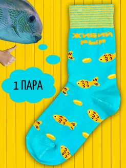 Высокие длинные носки хлопок с принтом рисунком рыбки