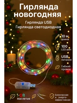 Новогодняя гирлянда USB 10 м 100 LED разноцветная