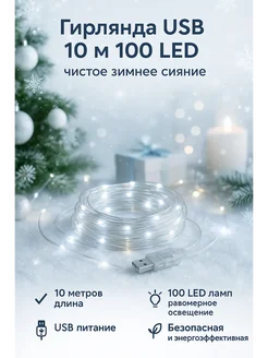 Росса новогодняя гирлянда USB 10 м 100 LED белая