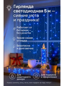 Светодиодная росса гирлянда на батарейках 5 м